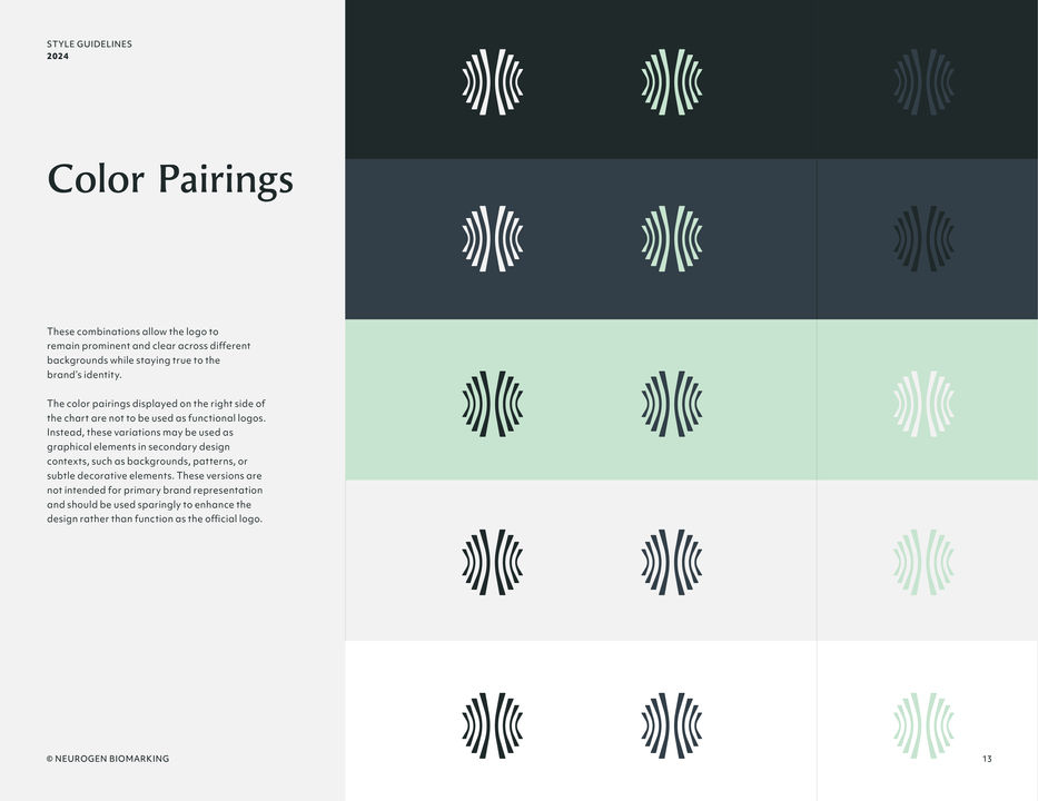 The brand needed to make a complex, often overwhelming topic approachable and human. The design solution was grounded in the principle of empowerment through early action, focusing on clarity, calmness, and emotional connection. Drawing directly from the style guidelines I created, the brand’s visual language employs a restrained, modern palette to communicate professionalism, innovation, and trust. The logo is a central expression of the brand’s vision. It is inspired by the organic forms of the brain and the progressive development of neural networks, symbolizing both cognitive function and the possibility of growth through early intervention. The interwoven lines suggest pathways forming new connections, evoking the idea that knowledge and proactive care can reshape outcomes.